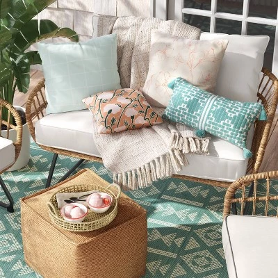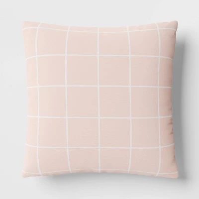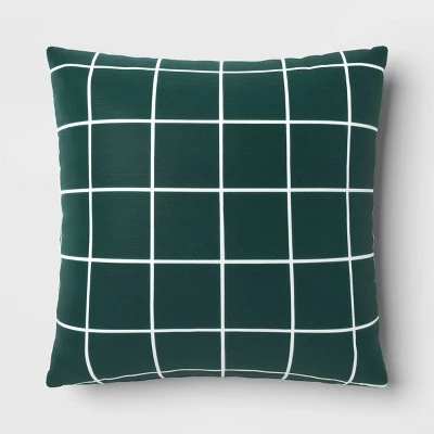 Spruce up your outdoor spot by tossing in this Grid Square Outdoor Throw Pillow from Room Essentials™. This 17-inch square pillow is adorned with a woven grid pattern for a classic, cozy aesthetic. Made of a recycled polyester-polypropylene blend with soft fill and designed with UV-resistant properties, the throw pillow makes a great pick whether you choose to display it on your patio, deck or porch.