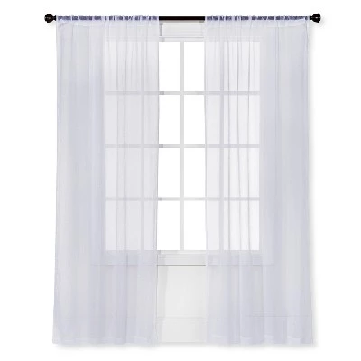 Bring a lovely finishing touch to your room decor with the Crinkle Sheer Curtain Panel White from Room Essentials™. This sheer curtain panel allows sunlight to seep through it while still offering privacy and a pretty look in your home. Fashioned in a white hue that makes it easy to coordinate with a variety of decor styles, it features a crinkle finish for a touch of added texture. Plus, it features a classic rod pocket design that makes this light-filtering curtain panel easy to hang.
