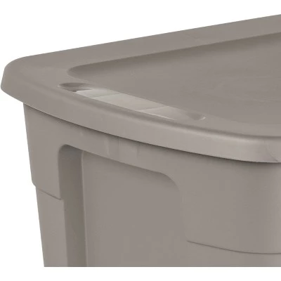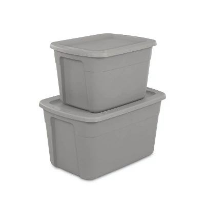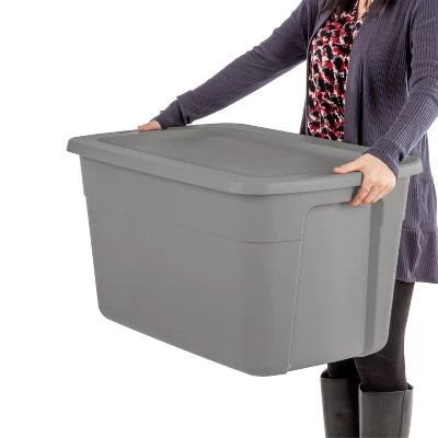Get organized with Room Essentials’s 30 Gallon Tote. This popular size tote is ideal for a variety of basic and lightweight household needs, such as sorting and storing away bedding, sporting gear, seasonal decorations and other large, bulky items! The lid snaps tightly to the base, keeping contents contained and concealed. The contoured end panels and in molded handles provide a comfortable grip for lifting and carrying, making transporting the tote easier, whether moving into a dorm or storing away belongings in the attic or basement. The indexed surface of the lid allows totes to stack neatly on top of each other for efficient use of vertical storage space. When storing items away, use good judgment and donāt overload them or stack them too high; be mindful of the weight in each tote and place the heaviest tote on the bottom. The classic styling offers a refreshing, clean, and coordinated look. The overall assembled dimensions of this item are 30 1/2″ L x 20 1/4″ W x 16 5/8″ H.