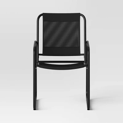 This 3-Piece Metal Patio Bistro Set from Room Essentials™ is ideal for an impromptu dinner under the stars, a Sunday morning brunch or a warm cup of coffee. This all-weather patio set, which is also rust- and fade-resistant, comes with a circular table and two armchairs with mesh fabric seats and backrests. The compact outdoor set is made from steel, and all the pieces are supported on slender sled legs, giving it a gorgeous appearance.