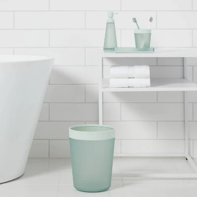 Make your bath routine convenient and bring a touch of style to your bathroom decor with the 4-Piece Bath Coordinate Set from Room Essentials™. This bathroom coordinate set includes an open-top wastebasket, a toothbrush holder with three-way partitioning, a soap/lotion dispenser and a bath tray to bring organization to your bath space. Featuring a minimalist design, each piece in this set coordinates with your existing bathroom decor and brings a touch of contemporary flair.