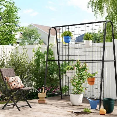 Add a stylish, functional accent to your patio decor with this A-Frame Outdoor Decorative Screen from Room Essentialsā¢. This A-frame decorative screen features a mesh design to divide spaces in your outdoor entertaining area without blocking the view. The rust-resistant construction helps keep the steel frame looking new, while the solid black hue blends effortlessly with any existing decor.
