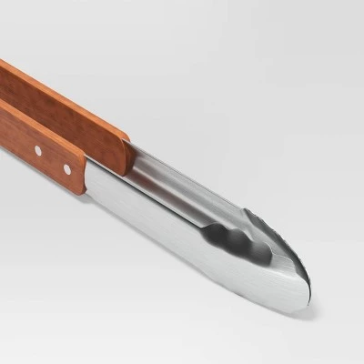 Everything you need for a successful grilling experience is included in this 7-Piece Stainless Steel Tool Set from Room Essentialsā¢. Each piece is made for durable stainless steel for long-lasting use, season after season. The wooden handles on the fork, spatula and tongs give you a comfortable spot to grip and work the tools as you flip, grab and move your food around on the grill. If you’re in the mood for kabobs, this grill set includes four skewers so you can slide on your favorite meats and veggies for a tasty meal fresh off the grill.