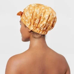Keep your hair dry in the shower with this Floral Shower Cap from Room Essentials™. Made from a lightweight fabric, this shower cap feels soft against your hair. It features shirred elastic at the back that helps it comfortably slide on your head without tugging or pulling hair. Showcasing tiny white flowers on a yellow background, it features a bow accent on the front for cute style.