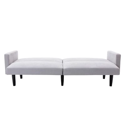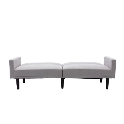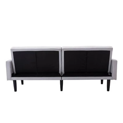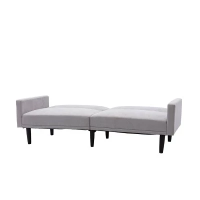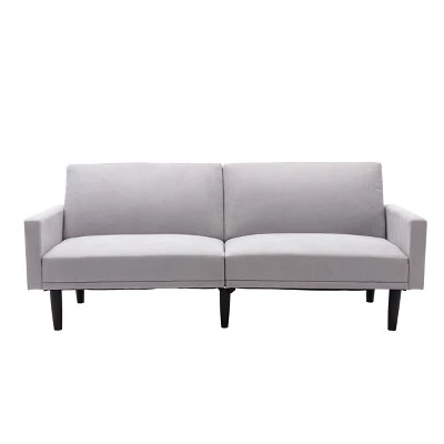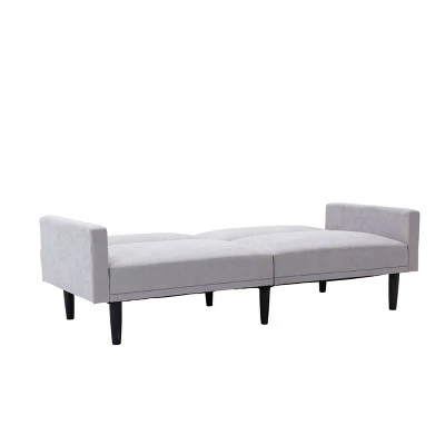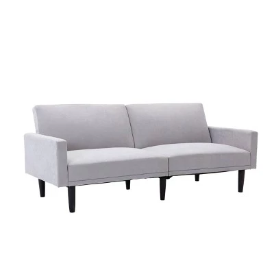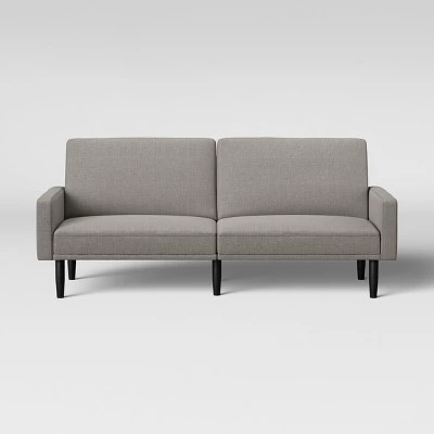 With this Futon Sofa with Arms from Room Essentials™, you’ll have comfy and convenient sitting that doubles as a flexible option for naps or hosting a guest overnight. Designed in a solid gray with tapered legs for a simple and sleek look, this futon sofa comes with a cushioned seat and back to help you relax in comfort. This futon sofa features click-clack technology, making it easy to convert into a bed. Whether you’re enjoying a refreshing drink and chatting with friends or family, or you’re curling up with a good book to read alone, this upholstered futon sofa will create a comfy spot for convenient and flexible seating in your home.