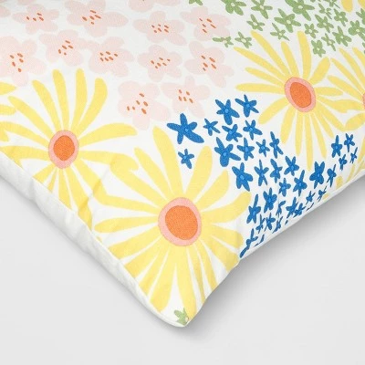 Instantly bring a joyful look to your space with this Happy Easter Lumbar Throw Pillow from Room Essentialsā¢. The decorative pillow is adorned with the bold blue typographic text “Happy Easter” on a textured white background, surrounded with tiny pink floral in pale pink and large flowers embroidered in cheery yellow. Featuring a 100% cotton exterior and soft filling, this lumbar throw pillow adds the right amount of comfort and festive style to your living room and bedding.