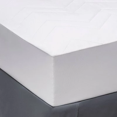 Get restful sleep with this Mattress Pad from Room Essentialsâ„¢. Protecting your mattress and providing extra comfort, this soft mattress pad is essential for any bed. The solid white color stays concealed under your fitted sheet, so you can layer it with any type of colored or patterned linens you choose. The microfiber construction provides breathability so you stay comfortable all night long, and it’s machine-washable to make cleaning a breeze.