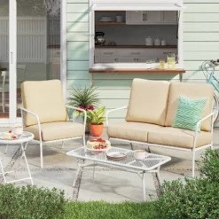 Rest snacks, drinks, platters and other items while spending time on your deck or patio with this Metal Mesh Coffee Table from Room Essentials™. This metal patio table in a rust- and weather-resistant finish makes a great addition to any outdoor space. It features a rectangular tabletop with a mesh design for chic, airy style and a fresh white frame color that coordinates with a range of chairs and other decor. Simply clean with water for easy maintenance.