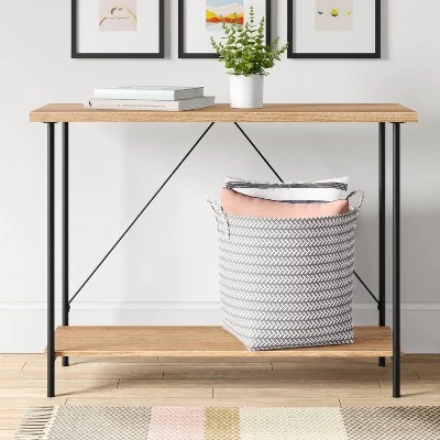 Create a warm and inviting living space with the items from the Mixed Material Collection from Room Essentials™. Each furniture item in this collection is crafted from a mix of metal and wood, creating a balance between function and style. Choose from a variety of end tables, coffee tables, console tables or TV units to enliven your living space, or add the bookcase, nightstand or writing desk to elevate your home office.