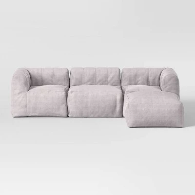 Enjoy get-togethers with family or friends in a comfy, modern style with this Modular Sectional Sofa from Room Essentials™. This sectional sofa set comes complete with a corner seat, an armless seat and an ottoman to create a complete ensemble. Made with a soft fabric exterior, this sectional sofa provides the perfect spot for enjoying a refreshing drink and chatting with friends or watching your favorite sitcom on TV. In a solid gray hue, the sofa blends easily with a range of decor styles and color palettes.