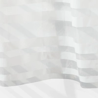 Add a touch of classic style to your bath space with this Shower Curtain with Rings from Room Essentials™. Crafted from 100% PEVA material, this decorative shower curtain features a buttonhole top for easy installation. Showcasing white horizontal stripes on a clear background, it instantly upgrades your bathroom decor. Best of all, it comes with 12 plastic shower rings for immediate installation. Coordinate it with the bath accessories of your choice to give your bathroom a stunning makeover.
