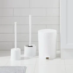 Easily unclog toilets in your home with the help of this Plunger from Room Essentials™. Made from BPA-free plastic, this toilet plunger is designed with a suction cup to easily pull out the blockage and dislodge the waste material. Showcasing a sleek design in white with a black plunger head, this toilet plunger comes with a white holder for discreet storing in a cabinet or corner in your bathroom.