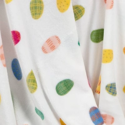 Add extra warmth to any setting with this Printed Plush Easter Eggs Throw Blanket from Room Essentials™. Neatly finished with hemmed edging, this plush throw blanket features a colorful print of Easter eggs on a white backdrop for a playful seasonal look. Made from super-soft plush material, this midweight blanket is both cozy and comfortable to use. Drape it over the back of your sofa, lounger or armchair to snuggle up in comfort.