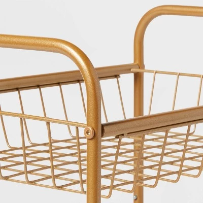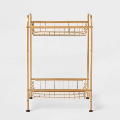 Add a simple yet elegant storage solution to your bath space using the Short Bath Storage Tower from Room Essentials™. This short storage tower comes with two open shelves to provide plenty of space for your bath essentials — shampoo, towels and more. Made with metal, this metallic gold storage tower makes a stunning addition to your decor — simply place it alongside the bathtub or shower to enjoy easy access to the items.