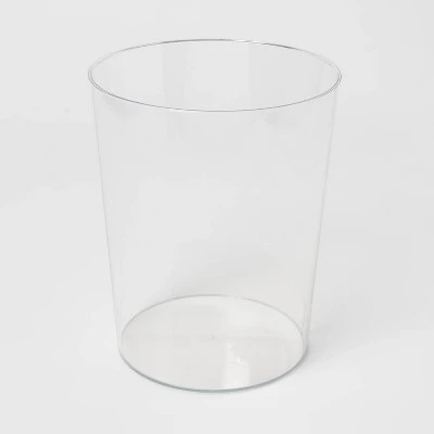 Create an interior decor setting with plenty of functionality and sleek design when you add the Solid Bathroom Wastebasket from Room Essentials™ to your space. Featuring a simple, polished construction and a cylindrical shape, this clear bathroom wastebasket easily incorporates with your existing decor, and the plastic material offers reliable use. Tuck it under your bathroom sink or place it in the corner for a practical accent you’ll appreciate.