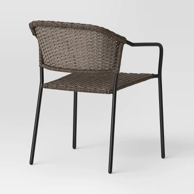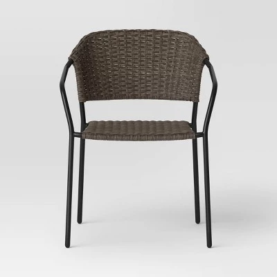 Add a chic touch to your backyard or patio space with this 6-Piece Stack Steel & Wicker Outdoor Patio Chairs from Room Essentialsā¢. These patio chairs are built on a weather- and rust-resistant steel frame to help it stand up to the elements, along with woven seat and back to bring you relaxation time. Just arrange the armchairs around a patio dining table for comfortable seating during conversation and cocktails.
