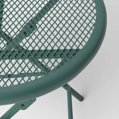 Finish off your outdoor setting with the elegant look of the Metal Mesh Folding Accent Table from Room Essentials™. Set on a metal frame, this round accent table features crisscross legs with a mesh tabletop for a stylish look. This metal-frame accent table boasts a rust-resistant and all-weather design to make it great for outdoor use, while providing an easy storage with the foldable construction.